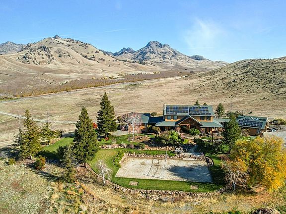 Dreams do come true! Epic sunrises AND sunsets at this Tahoe inspired hilltop home. 85 acres set in the Sutter Buttes. Beautiful wrap around porch, swimming hole inspired pool with 2 waterfalls and in-pool bar stools. Sand volleyball court, beautiful landscaping, owned solar. The home is a great-room floorplan with 23 foot ceiling, massive wood-burning fireplace, custom made staircase with peeled pine, hardwood flooring, large kitchen with island, walk-in pantry. Huge master bedroom with sitting room. Master bath has a massive walk-in closet, large oval tub with window overlooking the Buttes, walk-in shower, and balcony for your morning coffee as you watch the sunrise. The guest unit has 1-2 bedrooms, with kitchenette and full bath. Central vaccum. Check out the attached virtual tour and floorplans.