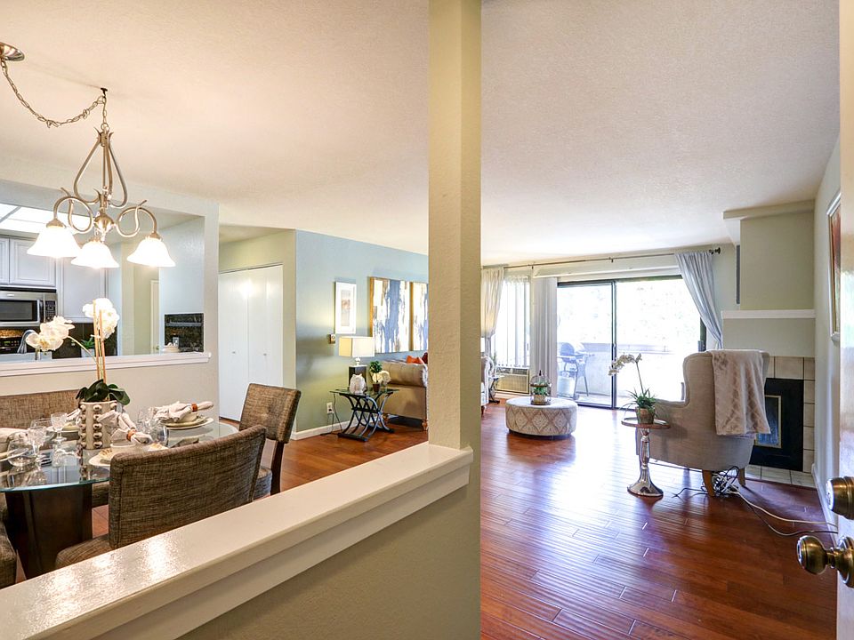 Be greeted with lots of natural daylight upon entering this unit. Featuring an open floor plan there is plenty of room for hosting events. The updated kitchen with granite counters and freshly painted cabinets is great for making any meal. Featuring a balcony overlooking the community pool and hot tub. No need to worry about climbing stairs for this building has an elevator! The location can't be beat as the home is located close to the shops, restaurants, schools, and highway access! * Beautiful 2 Bedroom 2 Bathroom Condo in Sundale area * Recently updated hardwood flooring throughout home * Recently updated kitchen and bathroom cabinets *Spacious Kitchen featuring Uba Tuba Granite Counter-tops *Upgraded quartz counter-tops in master bathroom *Save PG&E with natural daylight seeping through *Rare window air condition *The unit comes with one inside assigned garage parking and one outside *large separate storage in building *Irvington High school *On-site amenities and more to see.