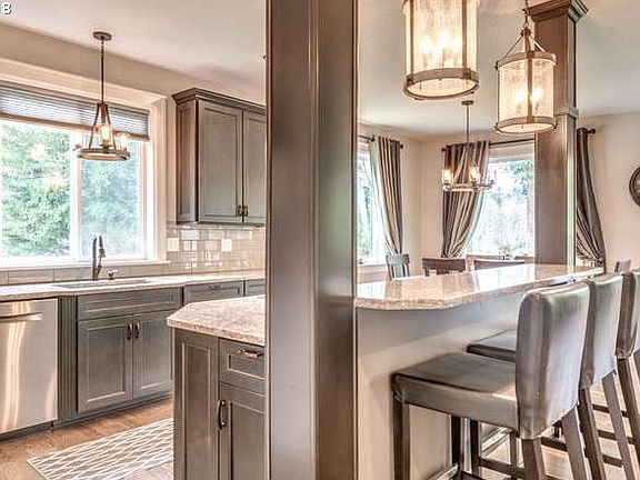 Little slice of Heaven~Custom newer home on Sandy River. Stunning Grt rm design w/attention to detail. Main floor hardwds. Mainflr office/den. Gourmet Kit w/quartz counters, stainless bosch applcs,brfst bar, family rm w/blt ins & pellet insert, opens to large covered patio. Upper Floor bonus/ 5th bdrm, Vaultd Master w/big tub &dbl headed shwr, heated tile floors. Easy commute to Portland. Pasture for horses, rm for shop.