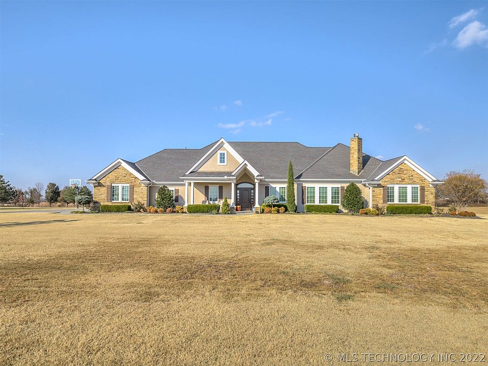 First time on the market! Wonderful custom built home on 4.53 acres (m/l) with RV Cover and 20X24 shop. From the exceptional curb appeal, to the tasteful interior, this home has just the right amount of style, while still offering that "welcome-home" feeling. Stunning kitchen with granite countertops has all the space and amenities you need. Large center island with induction cooktop, corner walk-in pantry, dual sinks-one has instant hot water, soft close doors and drawers, beautiful cabinetry, the list goes on! The long peninsula has overhang for seating, and is open to the spacious informal dining area, providing plenty of seating near the kitchen for guests and cooks to enjoy. You can admire the greenbelt view while working in the kitchen, from the gorgeous arched window over the sink. The open living room has a woodburning fireplace with heat-a-later, which is also piped into primary bedroom. Separated primary bedroom has tray ceiling, and luxurious private bathroom. Primary bath has corner soaking tub, and large step-in shower with seat, constructed of beautiful stone. Double sinks and water closet complete the primary bathroom, which also leads to the oversized walk-in closet with double built-in dressers and plenty of lighting. Formal dining room and office near front entrance have wood flooring. Office has transom opening above glass doors, and has a built-in desk and bookshelves. Laundry room with decorative door has deep sink, nice counterspace, plenty of storage cabinets. All bedrooms have walk-in closets, and bedrooms 2 and 3 share a Jack & Jill bath. 4th bedroom on second level is currently set up as 2nd living space. Lots of easy access attic storage on second level. Enjoy some downtime on the covered patio, taking in the beautiful views. 3 car garage has extra deep bays, and taller doors for larger vehicles. 30 amp electric, and water outside shop for use at RV cover. Storm shelter located in garage. Come make this your forever home!