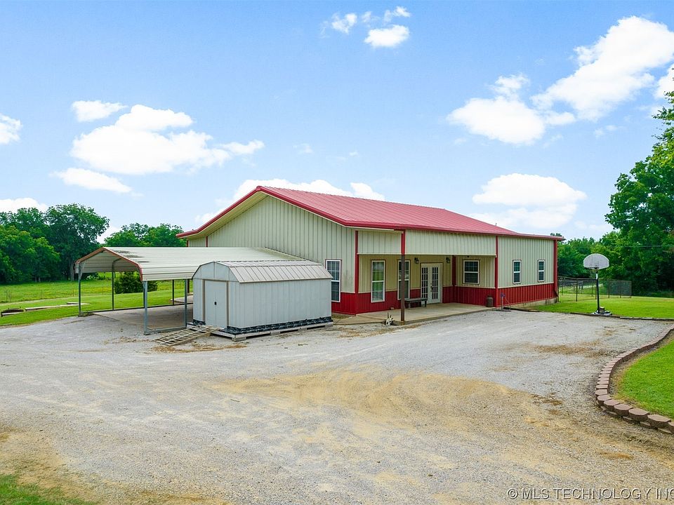 Experience the wonders of country living in this beautiful home located on three acres in rural Skiatook. Home has vaulted ceilings with concrete floors, the open kitchen with bar area leads into dining room and living area for a great family environment. The generously sized bedrooms provide ample room and closet space. Master bedroom and bathroom is on the second floor with a private balcony. Inside 8-10 Person Safe Room, Covered Patio, Storage, Metal Building workshop with RV/Boat parking, Shed, No HOA.