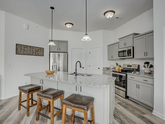 - Features: Vinyl Flooring, Breakfast Bar, Kitchen Island, Pantry, Wood Cabinets