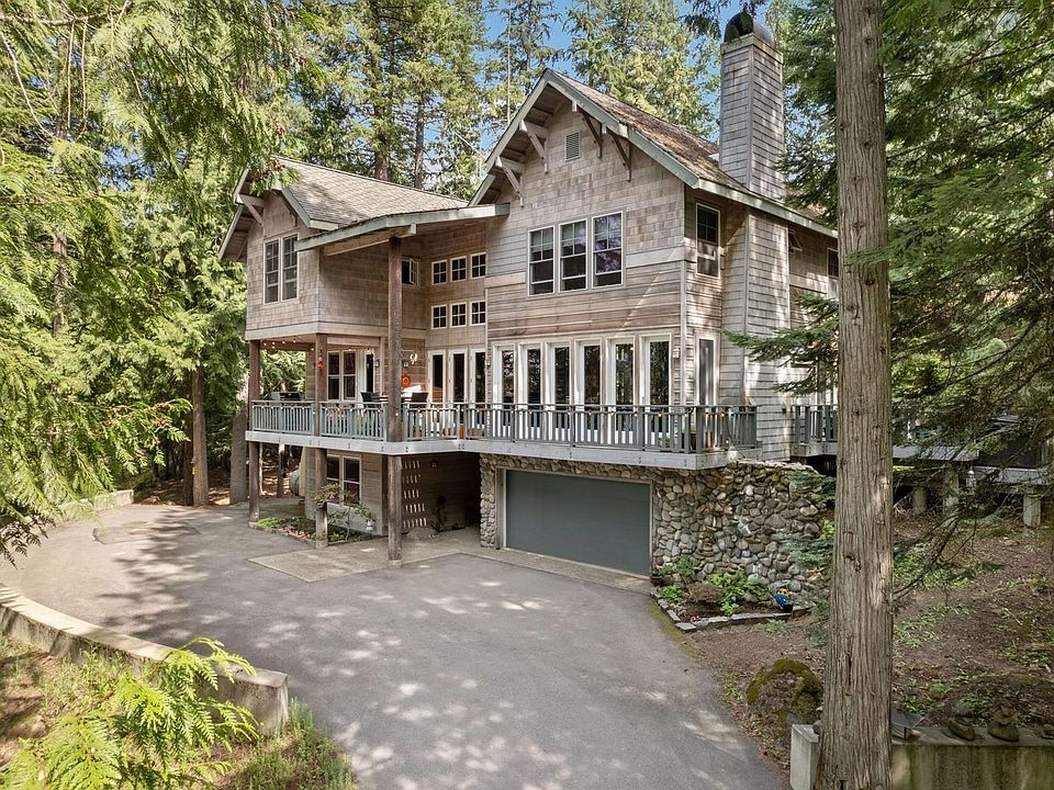Introducing an extraordinary river-view residence that stands proudly in its natural setting on 2.14 acres, offering a harmonious blend of refined architecture & tranquility. Floor-to-ceiling windows bathe the entire home in soft natural light. The gourmet kitchen, a haven for culinary enthusiasts, features high end appliances, custom cabinetry & wine storage that seamlessly blend form & function. Expansive decking creates a comfortable outdoor living space. Dual primary bedroom suites allow respite from the world & incorporate beautifully appointed en suite spa-like baths. Detached 1 bedroom/1 bath guest home mirrors the luxurious aesthetic and earthy finishes of the primary residence. This home's understated sophistication, combined with its forested setting, provides a rare opportunity to live the North Idaho experience at its finest.