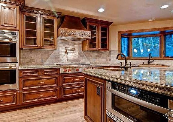 Set on nearly an acre of land adjacent to national forest, this spacious home was designed with guests in mind. Features multiple indoor and outdoor gathering places with six bedrooms, two laundry rooms (each with washer and dryer), a bar and a large chef's kitchen. Private backyard patio and balcony. Features include copper sinks, granite counter tops, heated walnut floors and two fire places. Surrounded by aspens in a scenic East Vail neighborhood