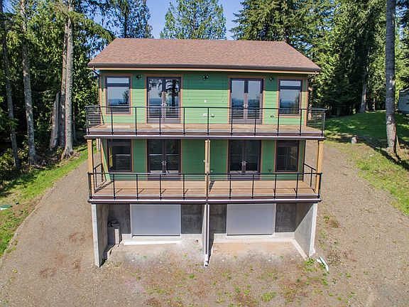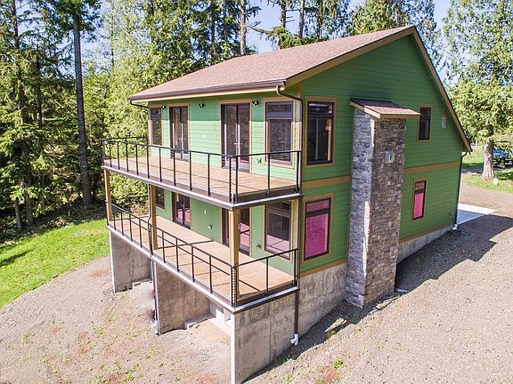 Remarkable Urban Cool, Custom built home from construction to finish. Home boasts 2 bedrooms w french doors to their own deck and a tile shower. Up you find the beautiful kitchen w/stone counters and back splash and a large island.Living space with propane FP and Knotty pine vaulted ceilings and beam and massive windows to take advantage of your views of the river. A wonderful master with walkin shower and custom tub w/walk in closet