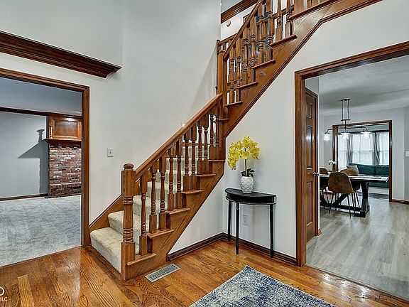This beautifully updated colonial-style home in the desirable Willow Lakes neighborhood offers 4 spacious bedrooms and 2 and a half baths, blending modern updates with timeless character. Upon entering, you'll be greeted by a grand foyer featuring cathedral ceilings and hardwood floors. The spacious living room boasts a cozy wood-burning fireplace, elegant crown molding and a wet bar-perfect for both relaxing and entertaining. The kitchen is designed for both function and style, with ample granite counter space, a center island, a large pantry and a built-in desk. Step into the bright sunroom with vaulted ceilings and an almost parklike view, plus access to a deck that's perfect for enjoying warm days. The luxurious primary suite features tray ceilings, a walk-in closet, and access to a private library. The 3-car heated garage provides plenty of space for vehicles and extra storage. Conveniently located near Center Grove schools, this home is a must-see! Schedule a tour today and experience its charm in person!