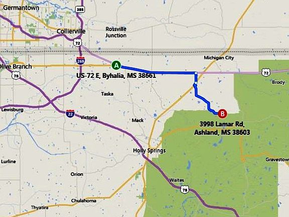 Excellent Hunting Opportunity – Joins Holly Springs National Forest Great Weekend Hideout Unobstructed 7+ Mile View This property has several opportunities and options. There is an old cabin on the land with a well, plumbing and electricity. The cabin does need some work if you want to use it as a weekender or full time. Also there is an area of the land with another well, power pole and meter if you want to set up a camper or build another cabin. From this spot you will have a beautiful 7 + mile unobstructed view of the countryside. Interior roads are in place for 4 wheeler riding, taking a walk or horse riding. This land is in a very good location for hunting. It is bordered on the back by the Holly Springs National Forest and there is a combination of woods and farm land surrounding for wildlife habitat. Good Deer and Turkey population in a lightly hunted community. The terrain is a combination of hills and level areas. A washed out portion up front would be perfect to modify into a lake. Do you Need a place to hide, collect your thoughts, get away from everyone, bug out, live off grid, hunt, roam, breath fresh air, scream, laugh or loosen up. Come buy this place. It is located 30 – 40 minutes from the memphis Metro Area, 10 – 15 minutes from several 4 lane highways, and about an hour from Tupelo. Its not the prettiest place i have ever sold but the price is attractive. Close street address is 3997 Lamar Rd. Ashland MS