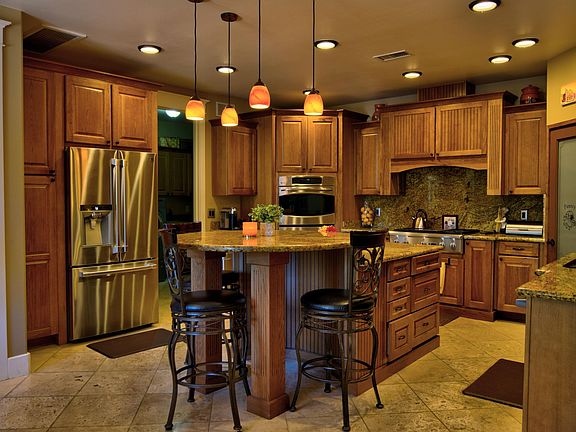 - Kitchen Features: Dishwasher, Refrigerator, Range/Oven Gas, Microwave, Kitchen Island, Breakfast Bar, Walk-in Pantry, Pantry, Double Oven