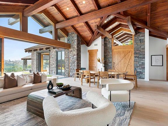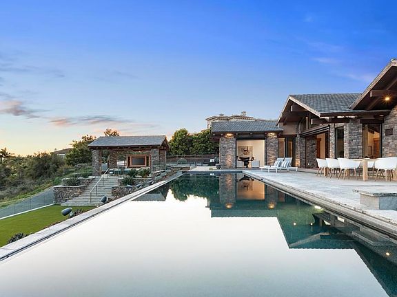 Perched atop the picturesque western bluff of Rancho Santa Fe, discover this impeccably crafted, modern oasis boasting unparalleled luxury and convenience. Just remodeled by luxury home builder Munsch Homes with meticulous precision and an emphasis on cutting-edge technology, this custom-built 4-bedroom residence offers seamless single-level living. Set upon a fenced nearly 3-acre lot, accessed by a secluded gated private driveway, the home captivates with breathtaking vistas stretching across the serene countryside in both northern and southern directions. Home includes: hand-cut stonework, Douglas Fir and Knotty Alder custom wood, 22' vaulted ceilings, double wall and door framing, Lowen windows, pivot doors, Rocky Mountain hardware, huge indoor-outdoor pocket doors, motorized outdoor shades, Du Chateau plank flooring, Subzero, Wolf and Miele appliances, Electric Mirrors, Gessi fixtures, a spa-like primary bathroom indulges with a glass-enclosed master shower, solar systems for residence/hot water & pool, professional grade security throughout, high-end RTI based audio/visual security, Xtreme 5' gas fireplace, whole house backup generator, double wall insulation, lots of discreet storage, plus much, much more. Outside, an infinity edge pool beckons, offering a serene oasis to relax and entertain against the backdrop of panoramic views. Multiple outdoor seating areas, including a custom gazebo. There is an orchard steps from the home with avocado, apple, pear, lemon, lime, orange and pomegranate trees. This is more than just a home; it's a sanctuary of modern luxury and comfort. The natural materials, and neutral palette used is so integrated with the surroundings that it inspires relaxation. Enjoy the added privilege of exclusive easement access to the neighboring 1000-acre San Elijo Lagoon Ecological Reserve trails system, ensuring a seamless blend of nature and sophistication for the discerning homeowner.