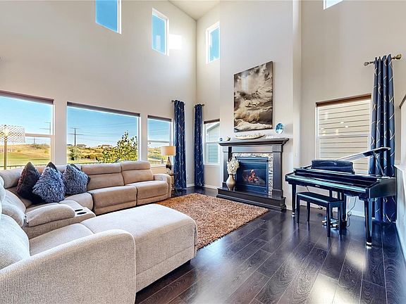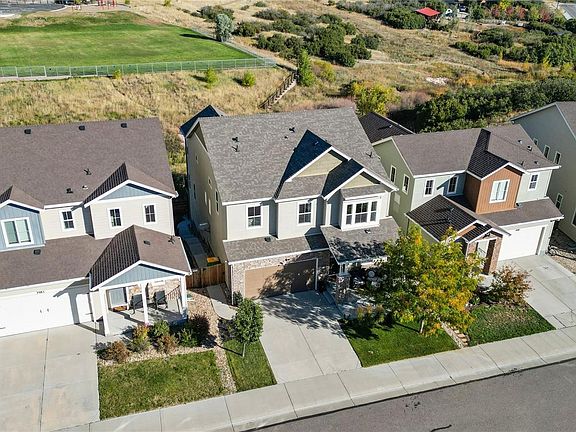 SELLER OFFERING $3500K CONCESSION. Views! Views! Views! Nestled in the scenic surroundings of Castle Rock, this impressive Terrain Living home strikes the perfect balance between modern luxury and natural beauty. The home's exterior spaces are stunning. Revel in the well-appointed and professionally landscaped backyard, which provides unmatched views of the open space landscape. It's an ideal setting for family gatherings, barbecues, or simply enjoying a tranquil evening sunset. Attention to low-maintenance greenery and irrigation will make this space easy to enjoy and easy to care for. There are additional concrete stairs going to the yard as well as an additional concrete patio to enjoy. Enjoy long mornings or evenings on the custom-built deck which wraps the entire breadth of the house, which is unique to this particular property. The interior of the home has been crafted with attention to detail and boasts an inviting ambiance worthy of a model home. Once inside, you're greeted by a sprawling open floor plan, upgraded lighting throughout, resplendent flooring, and large windows that bathe each room in sunlight. The contemporary kitchen is designed for the modern cook, complete with granite countertops, top-of-the-line appliances, and a breakfast spot on the large island. You will also enjoy ample views from the breakfast nook. The family room welcomes you with a custom fireplace, cathedral ceilings, and not to be outdone-- more views! Retreat to the master suite, which features a walk-in closet and a spa-inspired en-suite bathroom. Each additional bedroom offers space and versatility, perfect for family, guests, or office use. There is also a dedicated office space on the main floor for flexibility. The spacious 2-car garage provides ample room for vehicles and storage. Castle Rock is renowned for its picturesque landscapes, outdoor activities, and family-friendly vibe.