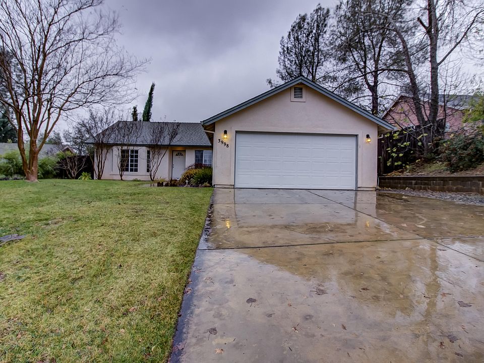 Great Meridian Pointe home centrally located and ready for new owner. Private backyard and patio area. Upgraded vinyl plank flooring throughout kitchen, living room and hallways. Vaulted ceilings and open floor plan. Near the end of a quiet east Redding culdesac. Large lot and Seasonal creek behind home.
