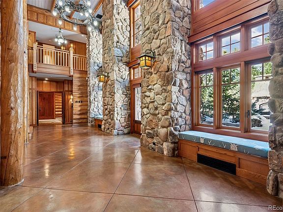 - Description: A Breathtaking, Lodge-Style Space With Soaring Vaulted Ceilings, Exposed Beams, A Floor-To-Ceiling Stone Fireplace, And Expansive Windows