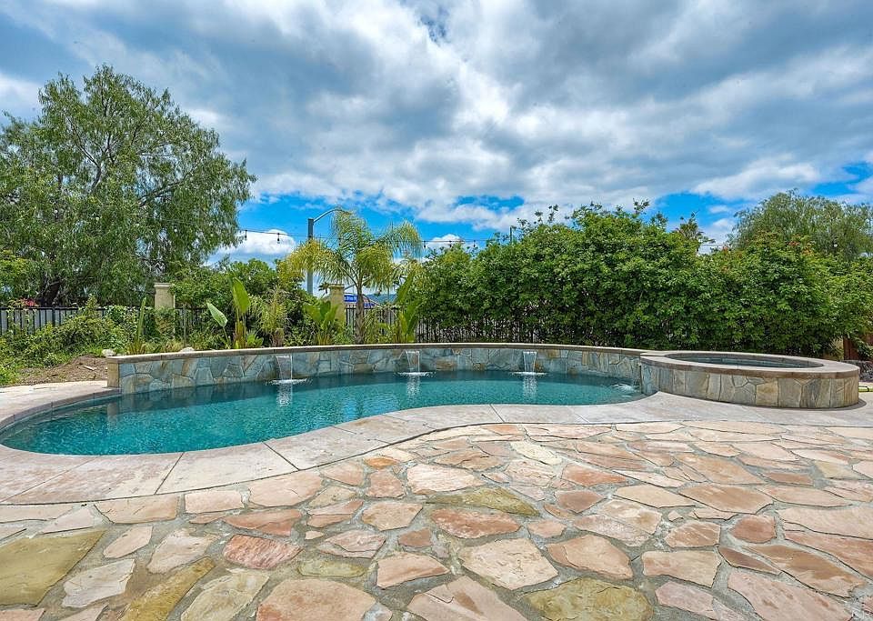 Welcome to your dream oasis in Murrieta, CA! This luxurious gem, situated on nearly one-third of an acre, boasts a mesmerizing PebbleTec saltwater pool & spa, beckoning you to indulge in pure relaxation. The covered patio provides a serene space to unwind, while the remodeled kitchen exudes sophistication with quartz countertops, stainless steel appliances, and matte black cabinet handles. With a bedroom and full bath on the entry level, convenience and comfort intertwine effortlessly. Upgraded baseboards and luxury vinyl plank flooring add a touch of elegance, complementing the vaulted ceilings that elevate the ambiance. Stay cool with A/C and a whole house fan, ensuring year-round comfort. The allure continues outdoors with a charming gazebo, sprawling lawn, and impeccable curb appeal. With no HOA and a low tax rate, this property offers both financial freedom and a haven for luxurious living. Your dream retreat awaits!