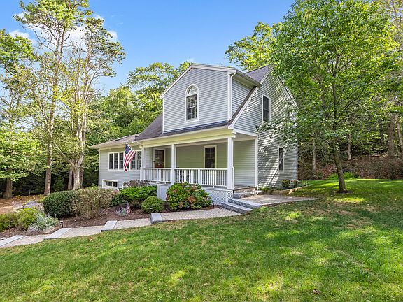 Welcome home to your Cape Cod oasis. This stunning contemporary Cape-style residence was originally used as a 'dance hall' for the neighboring property. it was completely rebuilt in 2013 and transformed into a beautiful single-family home and has since been updated as a serene escape. The open-concept main living area seamlessly connects the kitchen, dining, and living spaces. You'll love the stainless steel appliances, granite countertops, and charming architectural details including original beams, cathedral ceilings, skylights, and large windows and sliders that fill the space with natural light. A pellet stove adds warmth and coziness during the colder months.The first floor also features a convenient half bath and a spacious primary suite complete with its own laundry area. Upstairs, you'll find two generously sized bedrooms and a full bath. The partially finished basement offers a versatile bonus rooma"ideal for an office, home gym, or additional living space.Set on just under an acre and backed by conservation land, the property offers both privacy and a peaceful natural setting. Perfectly situated just minutes from Heritage Gardens, downtown, and the highway.