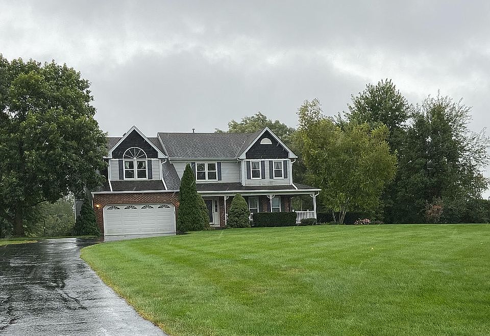 A traditional two story home with a functional floor plan and walk out basement on a spacious lot adjoining a large pond in a quiet neighborhood.