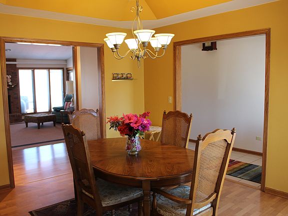 Gorgeous 1.5 acre lot, 3 bedroom,3.1 bath, 3 car garage, with full finished walkout basement. Second kitchen & laundry room in basement, lower level offer rooms for recreational area, gaming or storage. Spacious basement was freshly painted has new carpet & 3rd full bathroom, basement has exit to nice size brick patio. Bright kitchen with breakfast bar & oak cabinets. Living room with brick fireplace , master bathroom with jacuzzi tub, separate shower & walkin closet. 2 other bedrooms with own bath. Huge freshly painted deck leading from living room to enjoy the view. Invisible fence is installed. Professionally landscape property, located in Timber Ridge subdivision, minutes from I90. School district 300, close to hospital & shopping. Property being sold AS-IS.
