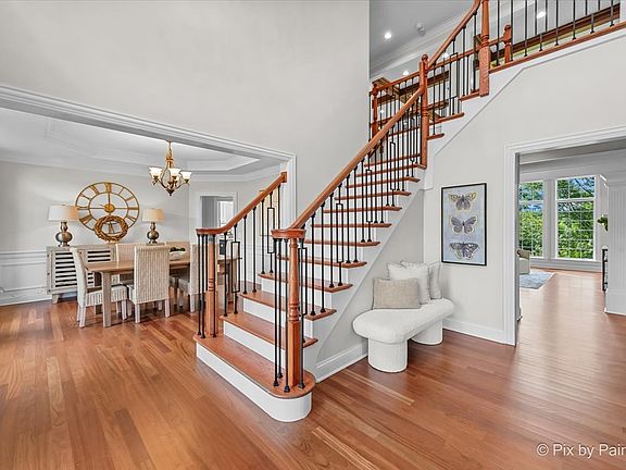 FALL IN LOVE WITH THIS EXCEPTIONAL FOX MILL STUNNER! SUNNY AND BRIGHT CUSTOM-BUILT DERRICO HOME WITH A SPRAWLING FLOOR PLAN THAT IS PERFECT FOR ENTERTAINING! TIMELESS SOLID BUILT BEAUTY FEATURES 3/4 ALL BRICK AND STONE EXTERIOR AND 3-1/2 CAR SIDE LOAD GARAGE ~ PEACEFUL PRIVATE SETTING BACKING TO PRIVACY TREES WITH WETLANDS AND POND JUST BEYOND AND NO NEIGHBORS BEHIND ~ COVERED FRONT ENTRY LEADS INTO AN IMPRESSIVE 2 STORY FOYER WITH A SPLIT DUAL STAIRCASE ~ GLEAMING REFINISHED HARDWOOD FLOORING THROUGHOUT THE MAIN LEVEL ~ HANDSOME 1ST FLOOR HOME OFFICE WITH BUILT-IN SHELVING, COFFERED CEILING, WAINSCOTING, AND GLASS FRENCH DOORS. A RELAXING VERSATILE 1ST FLOOR SUNROOM COULD ALSO SERVE AS A PERFECT LIVING ROOM OR A FUTURE 1ST FLOOR BEDROOM ~ DRAMATIC 2 STORY FAMILY ROOM W/FLOOR TO CEILING WINDOWS, 2 STORY WARM BRICK FIREPLACE, CAPTIVATING COFFERED CEILING AN OPEN CATWALK ABOVE AND GALLERY HALLWAY BELOW ADDING A TOUCH OF ARCHITECTURAL ELEGANCE ~ FORMAL DINING ROOM WITH WAINSCOTING, TRAY CEILING AND CROWN MOLDING ~ ENORMOUS SUNNY EAT-IN KITCHEN WITH QUARTZ COUNTERS, STAINLESS STEEL APPLIANCES, BREAKFAST BAR ISLAND, PLETHORA OF CABINETS AND COUNTER SPACE, BUTLERS PANTRY WITH WET BAR, A WALK-IN PANTRY, A BREAKFAST ROOM WITH FIREPLACE + DOOR TO NEW DECK ~ 1ST FLOOR LAUNDRY ROOM WITH A CLOSET, SINK AND CABINETS. DOUBLE DOOR ENTRY LEADS INTO AN ENORMOUS PRIMARY SUITE DESIGNED FOR COMFORT FEATURING A WARM FIREPLACE A PRIVATE BATHROOM OASIS, COMPLETE WITH A MASSIVE JACUZZI TUB, A DUAL-HEAD SHOWER WITH A BUILT-IN SEATING WALL, AND DUAL VANITY SINKS + A HUGE 19X12 WALK-IN CLOSET ~ SIZABLE 2ND AND 3RD BEDROOMS WITH VOLUME CEILING, A JACK-N-JILL BATHROOM + WALK-IN CLOSETS ~ 4TH BEDROOM WITH A PRIVATE FULL BATHROOM AND WALK-IN CLOSET ~ FULL FINISHED WALK-OUT BASEMENT IS AN ENTERTAINERS DREAM AND FINISHED TO PERFECTION: FEATURING A HUGE REC ROOM WITH FIREPLACE, WINE CELLAR, EXERCISE ROOM, 5TH BEDROOM WITH FULL ADJACENT BATHROOM, A PLAYROOM, A 12X8 WALK-IN CLOSET, ENORMOUS STORAGE AND UTILTY ROOM + DOORS THAT LEAD TO A BRICK PAVER PATIO WITH FIRE-PIT AND A WONDERFUL PRIVATE BACKYARD! 5TH BEDROOM IS IDEAL FOR AN IN-LAW ARRANGEMENT, TEEN SPACE, OR GUEST SUITE ~ PROFESSIONALLY LANDSCAPED YARD WITH FLAGSTONE STEPS + IN GROUND SPRINKLER SYSTEM. ENTIRE HOME HAS BEEN UPDATED AND REFRESHED JUST FOR YOU + NEW ROOF TOO! NEW ENJOY ACRES OF OPEN SPACE, MILES OF PAVED BIKE TRAILS, WALKING PATHS, 11 PARKS, FISHING PONDS + POOL & CLUBHOUSE/COMMUNITY CENTER WITH MEETING ROOM, AND GORGEOUS GATHERING ROOM WITH FULL KITCHEN, PLUS SEVERAL COMMUNITY EVENTS THROUGHOUT THE YEAR THAT INCLUDE: 4TH OF JULY PARADE, 5K RACE, EASTER EGG HUNT, COOKIES WITH SANTA, SCHOOLS OUT PARTY, BOOK CLUB, BUNCO, FOX MILL SWIM TEAM AND SO MUCH MORE! BELL GRAHAM ELEMENTARY SCHOOL IS LOCATED IN THE SUBDIVISION + SHOPPING, DINING, DOWNTOWN STC + METRA STATION, AND MUCH MORE JUST MINUTES AWAY!