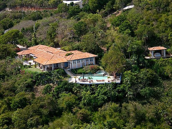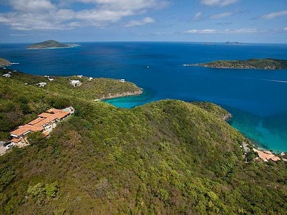 Unique among St. Thomas homes, ''Indochine'' is a private 3-acre estate. Decorated with Asian antiques and modern teak pieces with Mahogany wood and coral stone floors it offers ultra comfortable interior living areas including a beautiful courtyard loggia and spacious outdoor seating and dining areas. Indochine commands stunning, panoramic ocean views and enjoys gentle cooling breezes. The main floor comprises the living areas, a huge kitchen, 3 bedrooms with en suite bathrooms and a library with a full bathroom that can be used as an additional bedroom. On the lower level is a suite with 2 bedrooms and 1 bathroom. All rooms are conditioned, or can be opened to take advantage of the gentle sea breezes. The property is gated and fenced, with hiking trails, a meditation pavilion, hot tub and generator. Also below is a studio apartment for a caretaker.