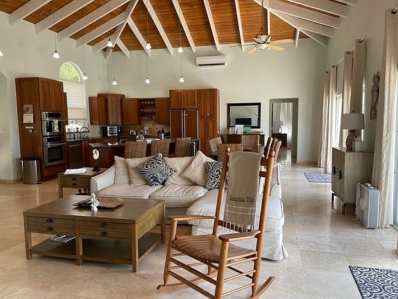 Seagrass Villa is an ultra spacious 4 bedroom / 4.5 bath villa with panoramic water views over Great Cruz Bay and beyond. This villa has been a successful short term rental but would also be a wonderful family home because of it's internal staircase to the lower bedrooms and family room. Each and every bedroom is a spacious primary suite with a large ensuite bath, all with double sinks, tiled showers, water closet and clothes closet. Gourmet kitchen with two wall ovens and island bar with gas range. The great room open out to the pool and sun deck. The lower family room has a pool table, tv and couches. This villa is a must see!