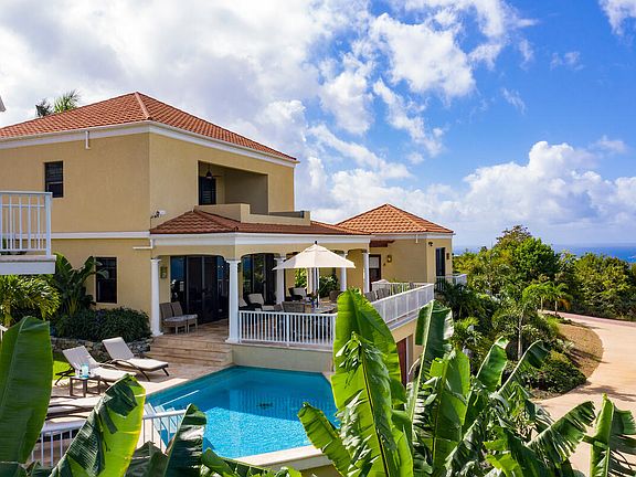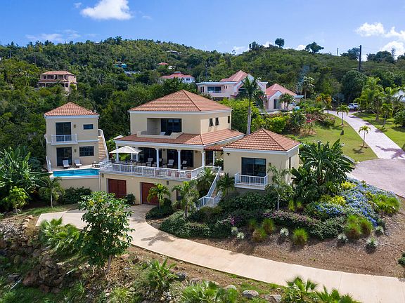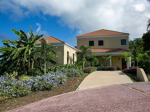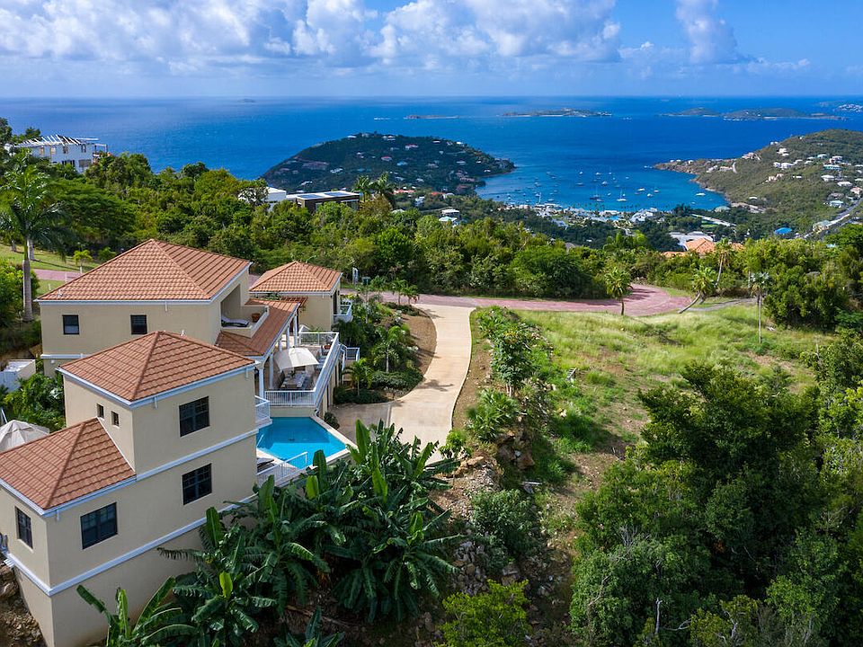 Ard na Mara // Irish for ''High Above the Sea'' is a brand-new luxury villa perched atop Virgin Grand Estates. This 4 bed, 4.5 bath retreat blends modern design with island tradition, featuring rich mahogany, natural stone, and tropical woods. The open layout flows from a gourmet kitchen and great room to expansive covered decks, a pool with playful sea turtle mosaics, and an outdoor kitchen, all with panoramic Caribbean sunset views. The villa is arranged across three separate pods for privacy, including a guest apartment with its own kitchen. Set on a gently sloping, landscaped lot in a quiet, upscale neighborhood, just a few minutes from Cruz Bay. Double your land - the neighboring parcel is also for sale: 0.69 acres for $375K.