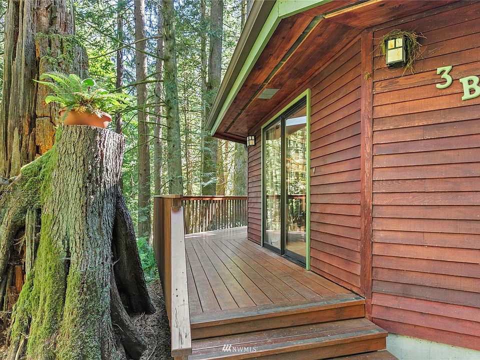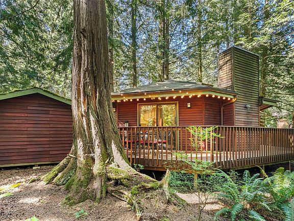 Follow the tree lined driveway to this cozy cabin getaway in the woods of Sudden Valley. Surround yourself with peace and quiet thanks to the seasonal creek and greenbelt behind the home. Walk into an open concept kitchen, living room/dining room area with warm gas fireplace. Two relaxing bedrooms and one full bath in addition to laundry room complete the space. Expansive deck surrounds two sides of the home. Perfect for outdoor bbq's or enjoying your beverage of choice. If you love nature but also want amenities this place is for you. Sudden Valley is a great destination for golfing, boating, hiking, bike riding and more. Come and live year round or make this your vacation/rental home and live like your on holiday every day.