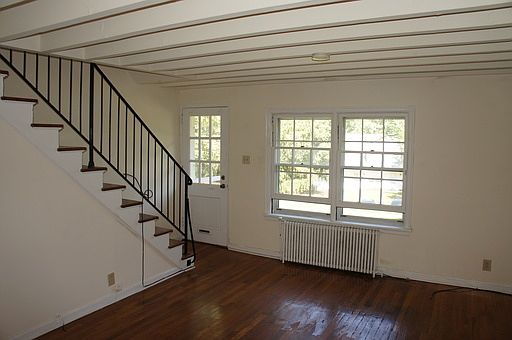 Townhouse style 1 BR apartment. Living Room, DiningRoom and Kitchen on first floor with large bedroom and bathroom on2nd floor. Wood floors throughout. Front and back entrance. 1parking space and heat & hot water included.