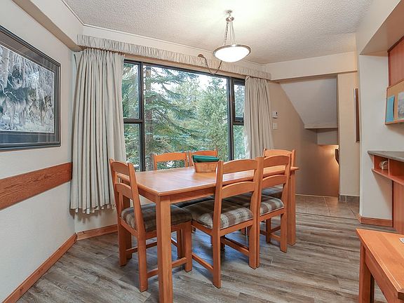 Own a piece of Whistler at a fraction of the price! This 1/12 share ownership property provides 1 week of usage every season through a rotating calendar, plus a bonus 5th week every fifth year! Located in a quiet Bayshores cul-de-sac, the lower floor features in-suite laundry, a dry sauna, bathroom and primary bedroom, the open main floor has a full kitchen, dining and living rooms, above are 2 bedrooms and a shared bathroom. Common area amenities include a private tennis/pickleball court and a bbq/picnic area in the central garden. Stroll or ride the valley trail to Alpha and Nita Lakes, ski lifts and other Creekside amenities. For short spells in Whistler, this bright end unit is an excellent lifestyle investment, or exchange your week around the world through Interval International.