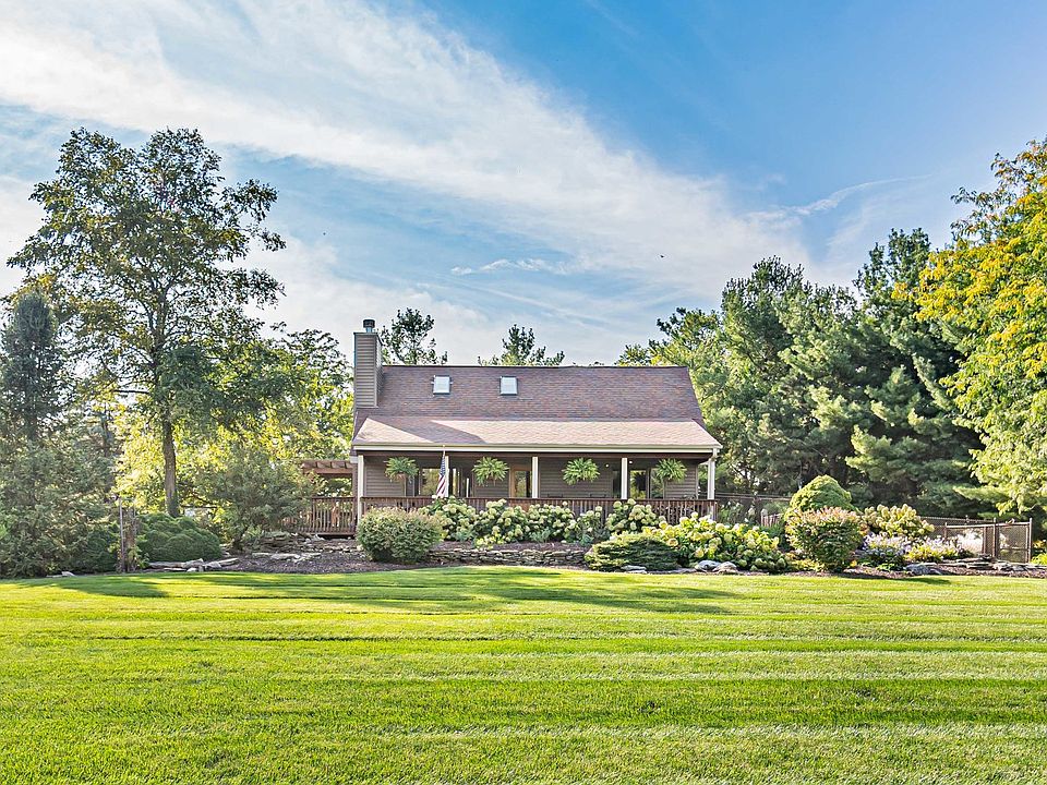Welcome to this serene property on 15.36 acres, conveniently located near Elburn. This property has many beautiful trees, bushes, perennial gardens, and a fish pond. This custom home was completely remodeled in 2013. The house's exterior was completely upgraded, and the beautiful wrap-around porch highlights the stunning east and west sunrises and sunsets. The home interior features a chef's kitchen with Alder cabinets, granite countertops, stainless steel appliances, and a large island. The kitchen is open to the family room with soaring ceilings and a gorgeous quadra-fire fireplace that can provide heat for the whole house. The first floor also has a separate dining room, first-floor bedroom, and full bathroom. The second floor has a primary bedroom with a full bathroom and a spacious closet. The basement is finished with a rec room and an office/ or third bedroom. Everything in the home was upgraded in 2013: Roof, siding, Anderson windows, Insulation, electrical, plumbing, kitchen, bathrooms, flooring, trim, and paint. A whole house generator also powers the barn-Paver patio 2023. The oversized 3-car garage was built in 2017. The property is an animal lover's dream. The 90 x 100 barn features a new roof in 2015, eight stalls, paver walkways (2023), an office with a fireplace, a 28 x 28 workshop/mechanical/ maintenance room with heat and air conditioning, and an indoor riding arena. Outside are two fenced-in pastures ( new fencing 2015), an enclosed chicken cage, and a peacock enclosure. A 40 x 60 pole barn built in 2019 with electricity has multiple uses, including cars, equipment, storage, and more animals. Room for more pastures and Hay. Very convenient location. The Elburn Metra station is 10 minutes away, and shopping on Randall Rd is only 14 minutes away.