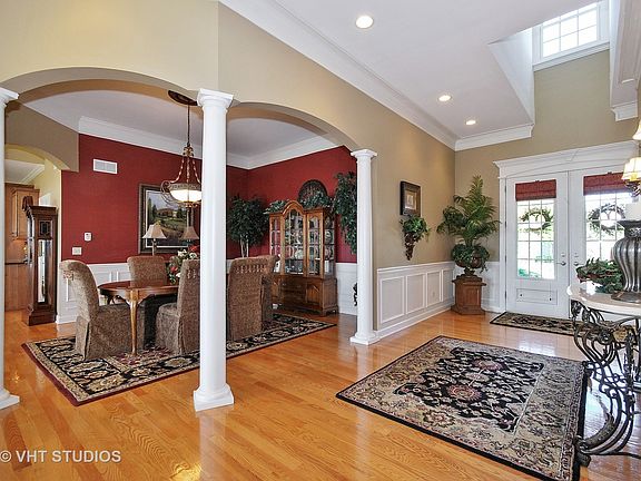 Looking for open floor plan ranch backing to open space w/bike path behind--affording terrific panoramic views? Over 6000 sq ft w/fin English basement, chef's kitchen w/granite, breakfast bar, SS appliances, & huge pantry. Great room w/fireplace that flows into kitchen & dining rm for fabulous entertaining or everyday living! Volume ceilings, hardwood flooring, over-sized mill work & tons of extras. Luxury master suite, walk-in-closet, His and Hers bath (each has toilet & vanity--one has whirlpool & shower connects them). Huge deck to relax & watch the world go by! Extra 12 x 12 storage in over-sized garage w/stairs to basement. Finished basement offers 2 bedrooms (one has sitting area), full bath, recreation, play or pool rm, & tons of storage! Panoramic vistas from back of home to open, rolling, green space. Walk one block to pool & clubhouse! You will love this gorgeous upgraded ranch w/fabulous, relaxing views! Highly rated Bell Graham Elementary School, walking paths, & ponds!