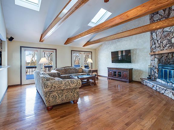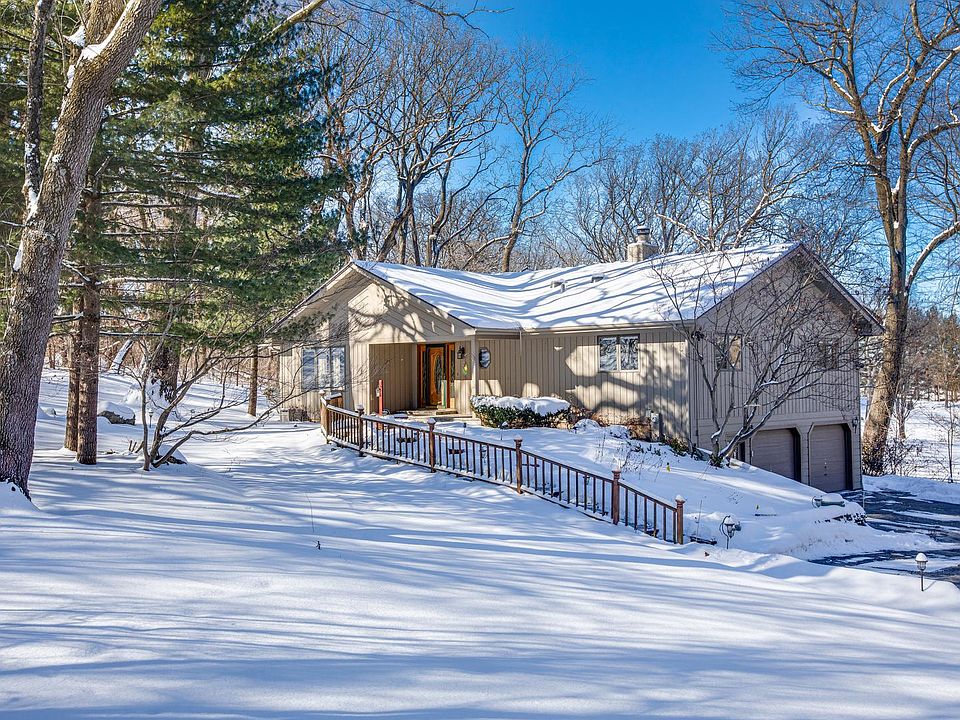 This spacious ranch with a full walkout basement sits on an incredible, private 2+ acre wooded lot with spectacular views! Beautiful hardwood floors, volume ceilings and great natural light fill this fine home! The beautiful stone walkway takes you up to the lovely front door. The entryway flows into the wide open living spaces. Relax in the fabulous 2 story family room featuring a floor to ceiling fireplace and french doors to the elevated deck with sweeping views of nature. The large kitchen offers all stainless steel appliances, a center island and a walk-in pantry. The huge dining room sits adjacent to the kitchen and opens up to the bright living room. The first floor primary bedroom offers a large walk-in closet and a private bath featuring double sinks; a whirlpool tub and a separate shower. Head down the hall to find the secondary bedrooms with walk-in closets, a full bath and additional powder room. The full walk-out basement is designed with a huge recreation room finished in 2022, an updated full bath in 2022, a workshop, a storage room and direct access to the 4+ car garage! This home offers the best of both worlds - country living and only minutes from all conveniences! Hurry and stop by today!
