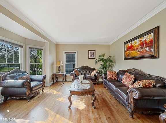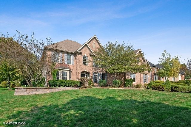 Introducing this spacious custom 2-story in highly desirable Fox Mill subdivision. Quality built home with attention to detail and open floor plan will please the fussiest buyers. As you enter this wonderful home, you will immediately notice the extensive woodwork with crown molding throughout and the volume ceilings in the foyer and family room. Large kitchen with an abundance of cabinets and counter tops and plenty of space for an expansive table make this home ideal for family and entertaining friends. Relax in the family room highlighted with a floor to ceiling fireplace and large windows to let in natural sun light. First floor bedroom/office/playroom with a walk-in closet and an adjacent full bath. Dual staircase leads up to the second floor where you will find four large bedrooms. The master bedroom provides many conveniences. Retire in your own sitting area defined with stately columns. Master bath has dual sinks, jetted tub and an enormous shower with dual heads. Second bedroom has vaulted ceilings, walk-in closet and a full bath. Third and fourth bedroom equipped with a Jack & Jill bath. If this isn't enough, the finished basement has plenty of room for games and entertaining including a large screen for the projector. There is also an additional room for storage or workshop. This delightful home is surrounded with mature landscaping to add privacy while relaxing on your deck or brick patio. Ideally located near La fox train station and downtown St Charles where you will find shopping and entertainment.