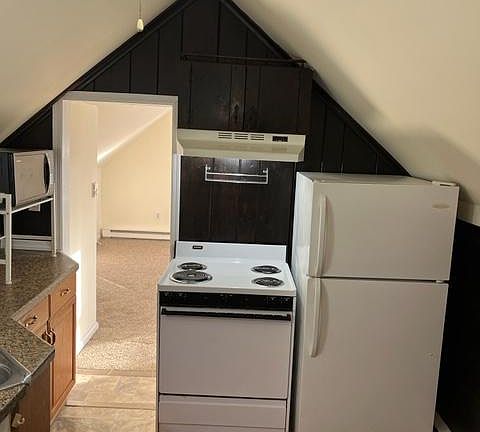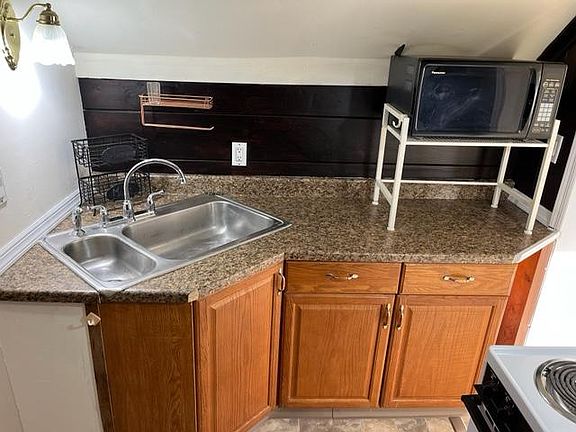 Third floor studio apt includes bathroom, eat in kitchen, large living room, large deck and off street parking. This unit has new carpeting and flooring, new shower stall and vanity. The unit has laundry facilities in the basement. This unit rental price of $1100 includes utilities, electric baseboard heat and hot and cold water. An electric stove, refrigerator and microwave are included with new widow shades installed in all windows. This unit is available February 1. This unit is for one person only. Window air conditioners are supplied by landlord. Interested parties may contact Jim.to schedule apt to view. This apt is close to mass transit including trains and is approximately three blocks walking distance. Utilities are included in rental price. One person unit and no dogs allowed.