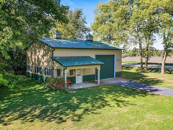 Oh that fresh country air - and still SO close to everything! Lovely 5 acre farmette with pole barn, expansive yard and endless views - and the school bus stop is right at your front door - (wait inside, out of the elements)! Home has 3 bedrooms, 2 bathrooms plus a powder room. Main level laundry room. 2 car garage with workshop and loft. Nice breezeway/porch to sit and enjoy the lovely backyard with fabulous views and over 50 mature trees right on your land. Recent updates include new furnace and air conditioning around 2017. New roof (complete tear off) around 2016. Exterior chimney brick and internal liner replaced in 2012. New 40' x 30' pole barn around 2012 - it is HUGE and a total game-changer! New driveway around 2012. New siding (with 1/2 inch styrofoam insulation underneath), exterior doors, nearly all windows around 2008. Brand new carpet in 2023 in family room and living room. Believe there are hardwood floors under bedroom carpet in bedrooms 2 & 3. Family room and porch additions in approx 1980. Well cared for home being sold as-is, with exception of possible radon mitigation. Traffic level should substantially decrease once construction at corner of Rt 47 and Main St. is complete. Come out to the country and bring your ideas for your new farmette!