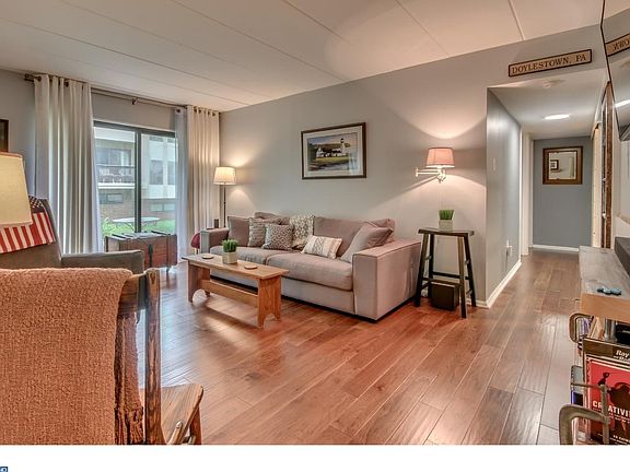 Better than New 1st Floor End Unit Condo with a short walk into Doylestown Boro. This 2 Bedroom and 1 1/2 Bath Unit Condo is in MOVE IN condition. Brand New Kitchen with all Cabinetry and Granite Counter tops and All New Appliances, Upgraded Bath and Powder room. New Washer and Dryer and All new flooring throughout including Hardwood, Carpet and Tile. Master Bedroom has a large Walk in Closet with closet organizer. New Ship lap walls in Living areas, Bathrooms and Laundry room with Sliding Barn style doors on all rooms to maximize space. A sliding Glass door leads to the new Paver patio with stepping stones over crushed red stone and a planting area. Easy walk to the parking area with no steps from the patio area. This Condo has access to the newly added walking trail into the Boro and is across from the YMCA. Convenient to Shopping and Dining, Museums and all that the Boro has to offer. Shows like a Model.