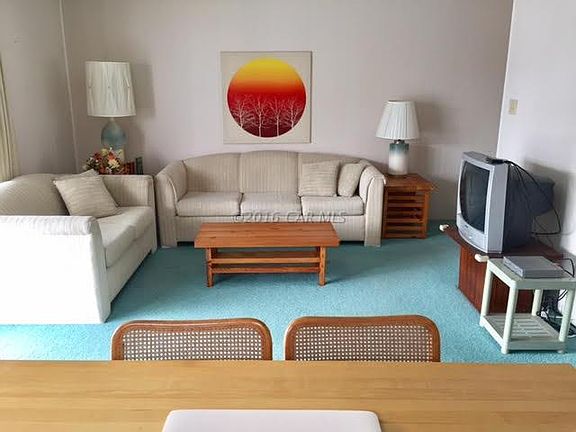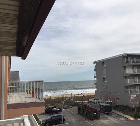 OCEAN View from living room and balcony. Nice 2 BR 2 Ba Ocean View unit. Storage unit on ground level for all your beach equipment Well maintained building and condo.Parking in rear of building.Great location and so so close to the beach. Walk to dining.