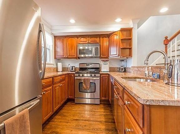 This 3 bed, 2.5 bath, home features an open layout, hardwood floors, gas fireplace, family room in the lower level and modern finishes throughout. Enjoy a chef's kitchen with granite counters, stainless appliances, and dining area that opens to a private deck. Upstairs offers two bright bedrooms and a full bath. The top-floor master includes a sleek en-suite with glass shower. Extras include central A/C, new gas furnace, in-unit laundry, smart thermostats, video doorbell, and deeded parking. First month's rent, security deposit, and broker fee due at signing. Tenant responsible for all utilities