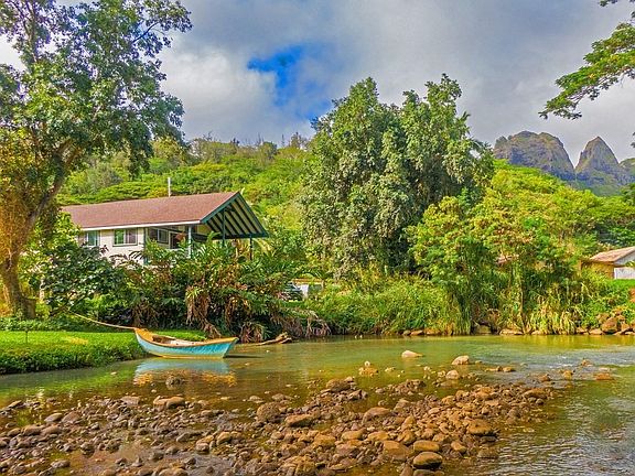 LIVE RIGHT ON THE RIVER, BETWEEN THE MOUNTAIN AND THE SEA! Dynamic house on a dynamic location that changes hourly as the clouds dance on KONG mountain and light shimmers on the flowing waters of the Anahola River. Almost new home with ultra-flexible floorplan allows several different living scenarios. Final exotic hardwood trim touches are being crafted into the home and it features a flexible layout that includes the open floor-plan design incorporating the kitchen / living / dining area, one bedroom, one bathroom, one bonus room, a loft, and the expansive covered lanai with views down the river. Vaulted ceilings and picture windows bring in the breeze and the vistas. Bonus room can be used as Zoom-room, office, homework station, TV room, napping nook, or sleeping salon. Attached and next door is the workshop that can be the 2nd bedroom and 2nd bathroom. Workshop is roughed out and stubbed out for plumbing and electrical, but is unfinished and awaits your dreams and wishes to complete. Guestroom? Multi-generational living? Home office? Hobby room? Writer's lair? Elevated living area means the ground level could be enclosed with breakaway construction and be used for several pursuits including covered parking, storage, boat house, workshop area, etc, offering yet another interesting option. The riverfront location is also dynamic and changes hourly as clouds kiss KONG mountain on their way to Mount Waialeale and sunlight glistens on Anahola River. Fish from your lanai or backyard. 1/3 of an acre has mature fruit trees and room for more. Kayak, dinghy, motor, paddle, row, stand-up paddle, canoe, sail, swim or eFoil down the river to Anahola Beach. Seven surf spots depending on the day, on this quiet stretch of sand featuring a beach park with a lifeguard and a few beach cottages dotting the shoreline. Newer home right on the river! Unit 2 of a 2 unit CPR. Could be your Shangri-La in 2022!