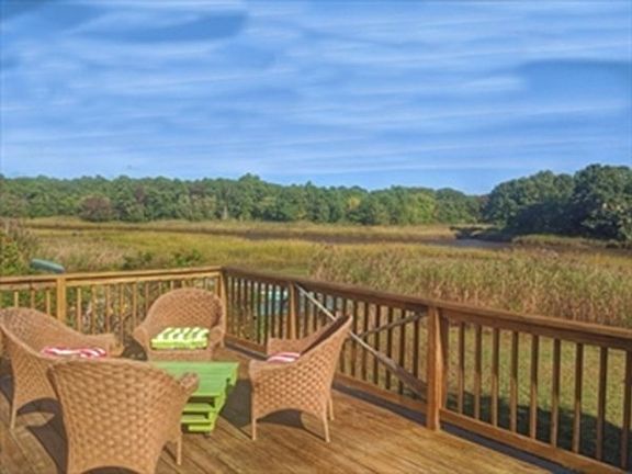 Drink in your beautiful surroundings with your morning cup of coffee. This charming waterfront cottage offers dreamy year round views of the marsh and water from the sun filled open living spaces that flow out onto its expansive deck. The bright open space and fireplace add charm and warmth, making it a perfect spot to gather with friends and family. The galley kitchen and two bedrooms complete this small but mighty package! Owner is relocating out of state and hopes to find a new owner who will appreciate the beauty of this home. As part of the optional Briarwood Beach Association, you will enjoy beach access within the neighborhood. Gas heat, town sewer and water all in place and betterments are paid in full. OPEN HOUSE SUNDAY 9/5 11am-1pm!