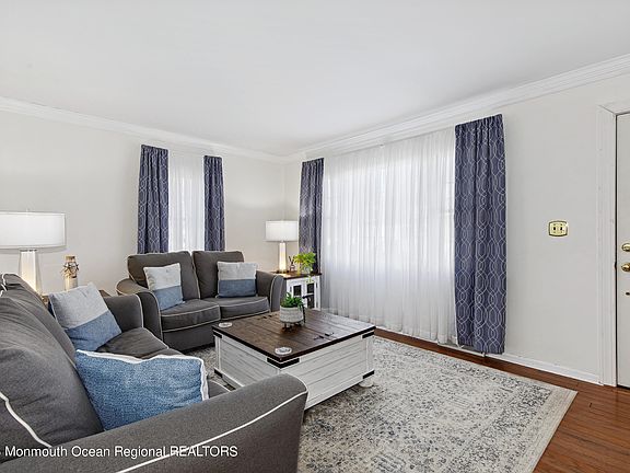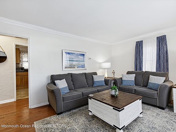 Adorable, 3 (possibly 4) bedroom cape located on a dead end street. First floor boast light filled living room with hardwood floors and crown molding, updated kitchen with plenty of cabinet and counter space, dining room (which may be converted to a 4th bedroom), large bedroom and full bath. Second floor features two spacious bedrooms as well as attic access for additional storage. Screened porch is the perfect place to enjoy those seasonal Jersey Shore days and nights. Private location with no homes to the left or in the back. Both on and off street parking available. Close proximity to NYC ferry, NJ transit transit train, schools, transportation, shopping, beaches, parks, marinas and all the Jersey shore has to offer! Make this house your home.