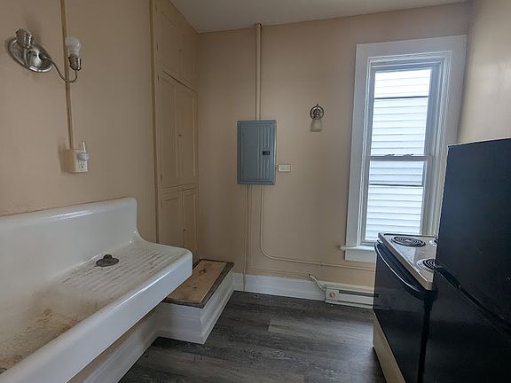 Interior completely remodeled, new vinyl flooring, paint, stove and refirgerator, upper unit Owner pays for water, tenant pays electric, deposit is $600, rent is $600 1 year lease Upper unit, no pets