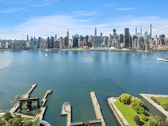 Commuting is a breeze, with the 7 Train and Ferry just one stop away from Grand Central Station and all of midtown Manhattan. Enjoy the convenience of having the 22 Acre Gantry State Park directly in front of the building, with its four piers extending into the East River, including one for fishing. The park offers spectacular 180-degree views of the Manhattan skyline, situated directly across the river from the United Nations.