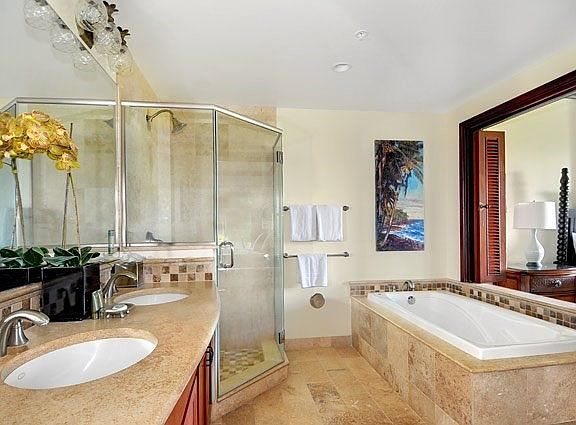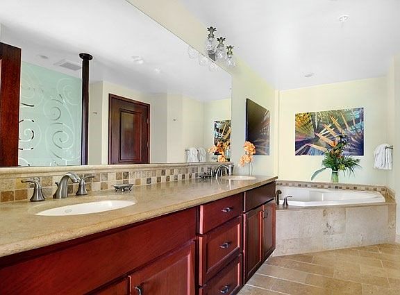 H402 - One of Waipouli Beach Resort’s most desirable oceanfront suites is currently available! This Penthouse Royal Oceanfront Condo is highest classification at this resort! Watch and hear the surf as it hits the sand right below from the living room, lanai, and bedrooms! You’ll thoroughly enjoy this ROYAL PENTHOUSE condo featuring designer furnishings and ultra-gourmet kitchen at one of the newest resorts on Kauai. Waipouli Beach Resort was built with attention to detail. The luxurious interior of this 2 bedroom, 3 bath, 1158 square foot unit includes top of the line kitchen with a Wolf glass cook top and oven, Sub-Zero refrigerator, GE microwave, Bosch dishwasher, granite counter top and African Mahogany cabinets. Three full bathrooms with Peruvian Travertine stone surrounds, soaking tubs and two showers to relax any over hiked traveler. There are two master suites - both with new King beds - plus a queen sleeper sofa in the living room to easily accommodate 6 people. H402 includes three flat panel wall mounted televisions, central air conditioning, elevator access, and interior full size stackable washer and dryer. H402 is among the most successful vacation rentals at Waipouli Beach Resort. Rental income history available upon request. Waipouli Beach Resort & Spa on the East Side of the Garden Isle - winner of Tripadvisor's prestigious Certificate of Excellence in 2012, 2013, 2014, 2015, 2016, 2017 and 2018 - is one of Kauai's premier vacation destinations. The main attraction on the 13+ acre property is the family-friendly two-acre fantasy pool and garden, three sand-bottom jacuzzis and two water slides.