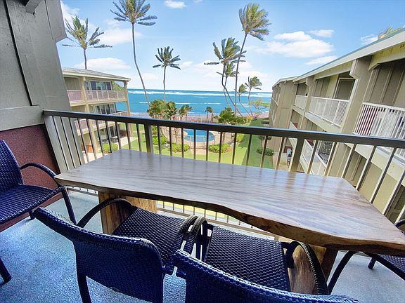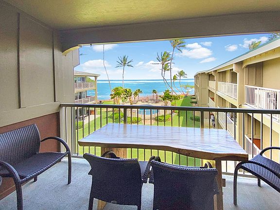 PREMIER OCEAN VIEW UNIT ON THE EAST SIDE OF KAUAI. Oversized 3 bed 2.5 bath unit with lock-out option.This remarkable direct ocean view unit is in the prime location of this complex. Exclusive Top floor unit with nobody above you and of course this building has an elevator for convenience when hauling suitcases or groceries. As you enter the unit, you are immediately captivated by the ocean views and will want to head straight to the lanai to feel the ocean breezes. Wake up to the amazing east-side sunrises right from your lanai or enjoy an afternoon of whale watching (in season) from this oversized unit. Within very close proximity you have several Restaurants, Grocery Stores and Boutique Shops. Not to mention the fact that you are juststeps from the 8 mile Kapaa multi-use bike/walking path. One of the rare larger 3 bedroom 2.5 bath units and the only top floor unit on the market with unobstructed ocean views. This unit has a lockout option with the master suite and master bath accessible through a second outside entry. This unit has been a successful vacation rental and short term rentals are allowed.Although, it is large enough to live in full time or enjoy as a second home. Not all units have an assigned parking spot...this unit comes with a dedicated parking spot included in the sale price.Featuring:Granite countersStainless appliances New DishwasherNew StoveNew Air Conditioners with extended warranties & service contract in placeHigh end furnishingsNew Stackable Washer & DryerAssigned parking spotNoteworthy: Although it was built in the 70s, it was completely renovated (down to the studs) in 2015 (new plumbing, wiring and remodeling).Please note: Sellers are asking new owners to take over the existing vacation rentals for 6 months after closing.