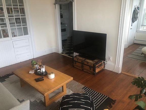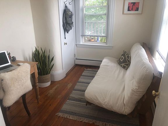 BIG Sunny one bedroom + office on top floor of multi unit house near Moody Street and Waltham Center! Great location with easy access to major roads, shops, buses, train to Boston, Watertown, Newton, Belmont, etc. Hardwood floors, big living room, large bedroom, one full bath, large eat in kitchen. Small extra room for storage or office. Easy street and municipal lot parking. Laundry across the street. Awesome porch! Great place! Tenant pays own gas and electric (gas heat, easy to heat).