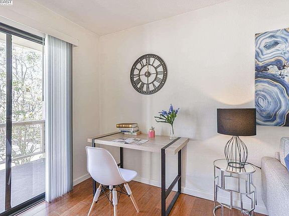 Hey! Time to settle down and get your own place! Nestled in a nice neighborhood, this 1B/1B condo is just beautiful and affordable! Features with hard wood floor, Security door, elevator, and assigned cover parking space, this cute home is move in ready. Nice patio has courtyard view. Club house, tennis court and private gym/sauna. Short walk to the bay, easy access to freeway and many high tech companies. HOA covers garbage, water, common area management and curb facilities etc.