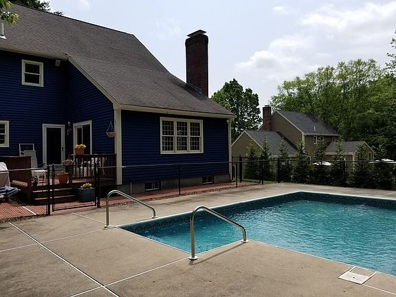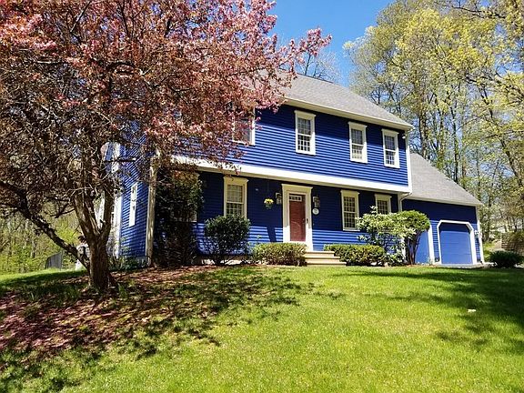 Price Reduced! ONE OWNER CUSTOM BUILT CENTER STAIRCASE SALTBOX COLONIAL! 4 brms, 3.5 bths. 2280 sf GLA w apprx 900 +/- additional sf on lower level that's 90% finished. This area has a full bath and the potential for 5th bedroom or entertainment room, 4 zone gas ht, ctrl air, irr system, alarm, built in wall safe, hardwoods, ceramic tile, random slate foyer, 2ND FLOOR LAUNDRY, large eat in country kitchen, mudroom, family room with vaulted ceiling and oak mantel over fireplace. There is a full wet bar in the front to back living room and a jacuzzi-style jetted tub in 2nd flr bathroom. All 2x6 construction. Fenced in 20'x40' in-ground pool/patio/deck abutting private, protected land. Attached 2 car garage. Great commuter location. close to Rts 290, 146, Mass Turnpike, and about 5 mins ride to the commuter rail station.