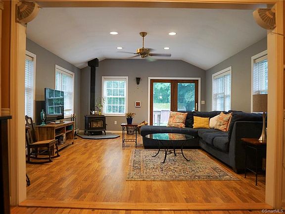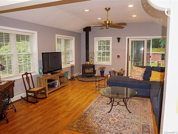 Take a look at this well-maintained Cape set on a large, beautiful lot. The front side porch is perfect for sitting outside and enjoying the flowers while you sip on your favorite drink. The main floor has a mud room, a kitchen and a formal dining room that leads to a bright and sunny, open, living room great for entertaining. The living room has a 9+ foot ceiling and is also surrounded by windows that overlook just under ¾ of an acre of beautiful trees, roses, and a patio. The wood stove is perfect for those wintery nights while you watch the snow fall and, in the Spring or Autumn open up those windows and let the fresh air breeze through. On the main level, there are two bedrooms as well as a full bathroom with double sinks. Upstairs, there are two more bedrooms along with another full bathroom. Hardwood floors are throughout the home. Additionally, the basement has a laundry room, a half bathroom, a wet bar, and a wood stove installed, along with a space that can be turned into a bedroom or an office. This house has so much potential to make it your own