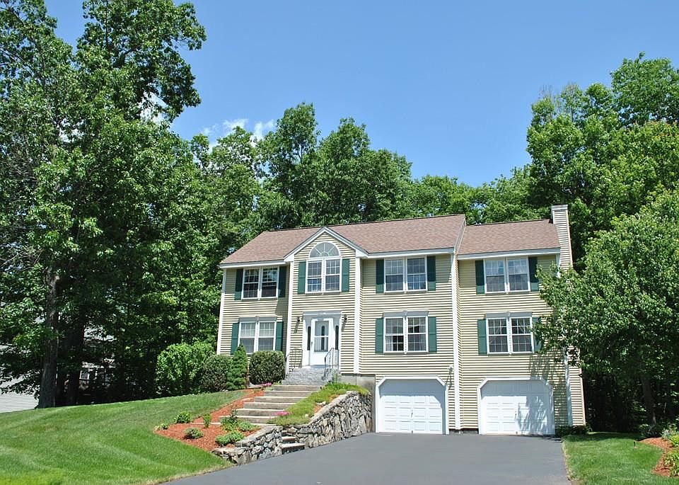 Largest layout on the cul de sac! Beautiful Colonial home abutting conservation land w/walking trails nearby that access a local public beach. 4 Bedrooms, 2.5 Bathrooms, and an oversized 2 car auto open garage. Custom updated front door with matching sidelight designs opens to a spacious tiled foyer. Kitchen with dining area, lots of cabinets, 2 work spaces, 2 pantries, and all updated appliances! Formal dining room w/Canadian Cherry flrs and natural light. Front to back living rm with a wood burning fireplace, adtnl living room with lovely glass doors. Half bath and laundry closet complete the 1st floor layout. Master suite w/spacious dble door closets, a walk-in, as well as a full bath with dual sink vanity. 2nd bdrm could be adtnl master, 2 more bdrms, and another dual sink full bath on the 2nd flr. Unfinished walk out, daylight basement with lots of potential! Deck out back faces the abutting conservation land. Near commuting, shopping, and scenic walking trails, a must see home.