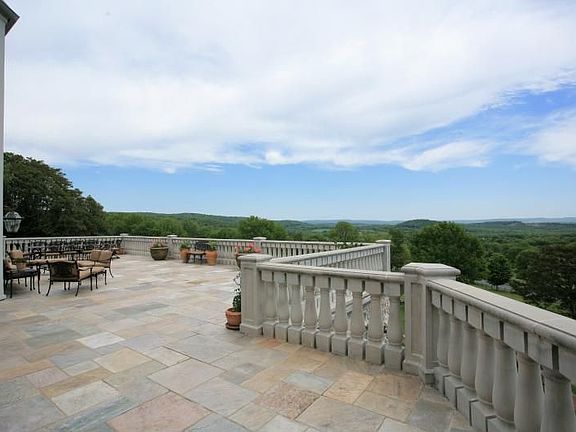 Spectacular 5 BR manor house set on almost 4 acres, spacious reception rooms, expansive stone terrace with balustrade & views stretching to Manhattan. Cement stucco & Georgia marble stone exterior