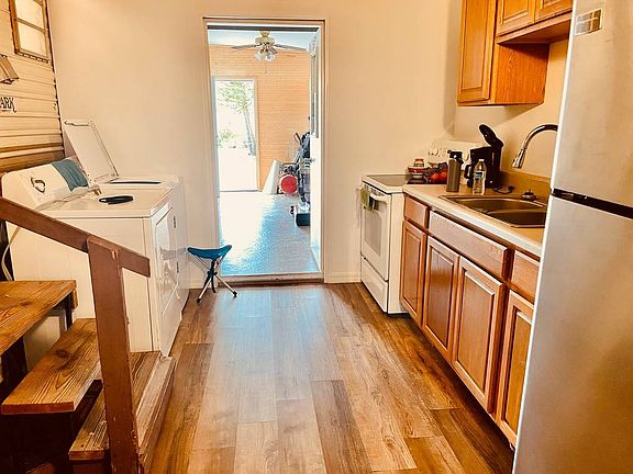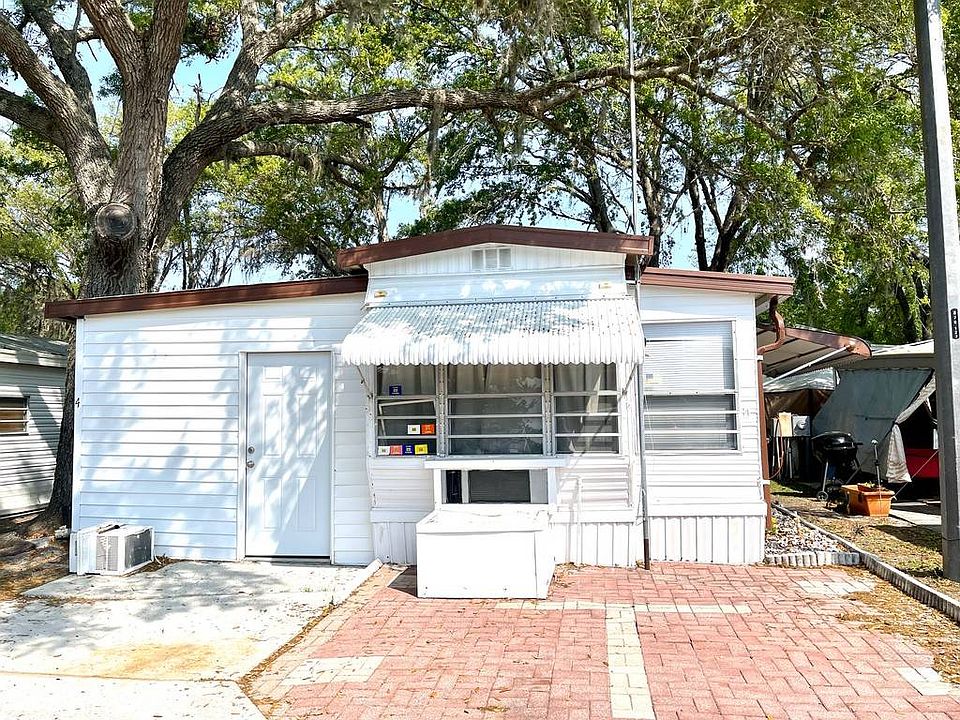 Homes in this community are on lot leased land. Owning the home, but not the land, you pay a monthly lot rent of $560 which gives you and your guest access to the amenities of the community........... This converted travel trailer is full of possibilities! The current owner has added on a large addition, doing most of the heavy lifting, so you can turn this space into the a home that is perfect for you at a great price........... You enter through the front of the addition, into what could be used as the living space or Florida room. The floor is vinyl. The next space has been set up as a kitchen, with kitchen appliances on one side, and washer & dryer on the other. This area has vinyl plank flooring & nice cabinets and countertops. Beyond that is a space that could be a huge walk-in pantry, a closet, or storage room............ There are three steps up to the travel trailer space which holds a small dining area, a nice bathroom, and an additional space that could serve as a bedroom, or living space if you added a Murphy bed or hide-a-bed for sleeping. This main area has lots of windows for natural light, and new vinyl plank flooring.......... The bath has a new tile walk-in shower, pedestal sink, and toilet with vinyl plank flooring........... Similar units in this park have been converted into amazing spaces. All it will take is your imagination & some elbow grease.......... Schedule an appointment to see it today!